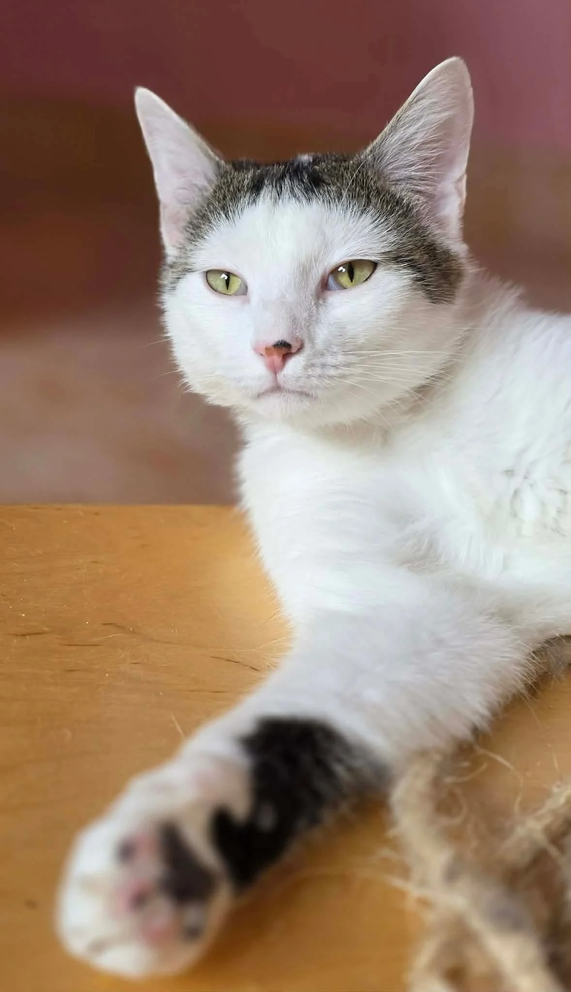 Whisky montre qu’il a complètement adopté le confort d’une maison et il est très amitueux autant avec l’équipe que les autres chats.
