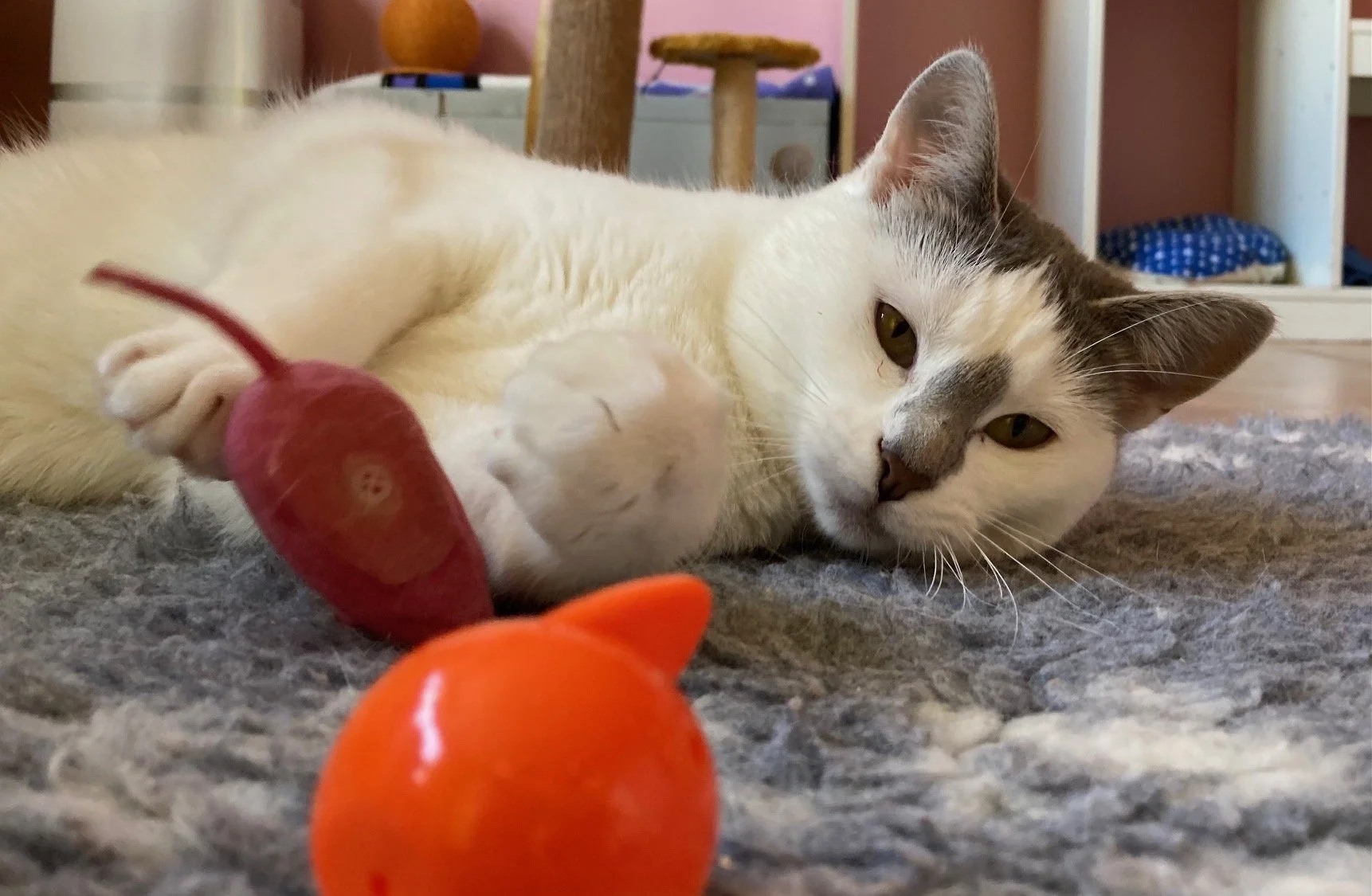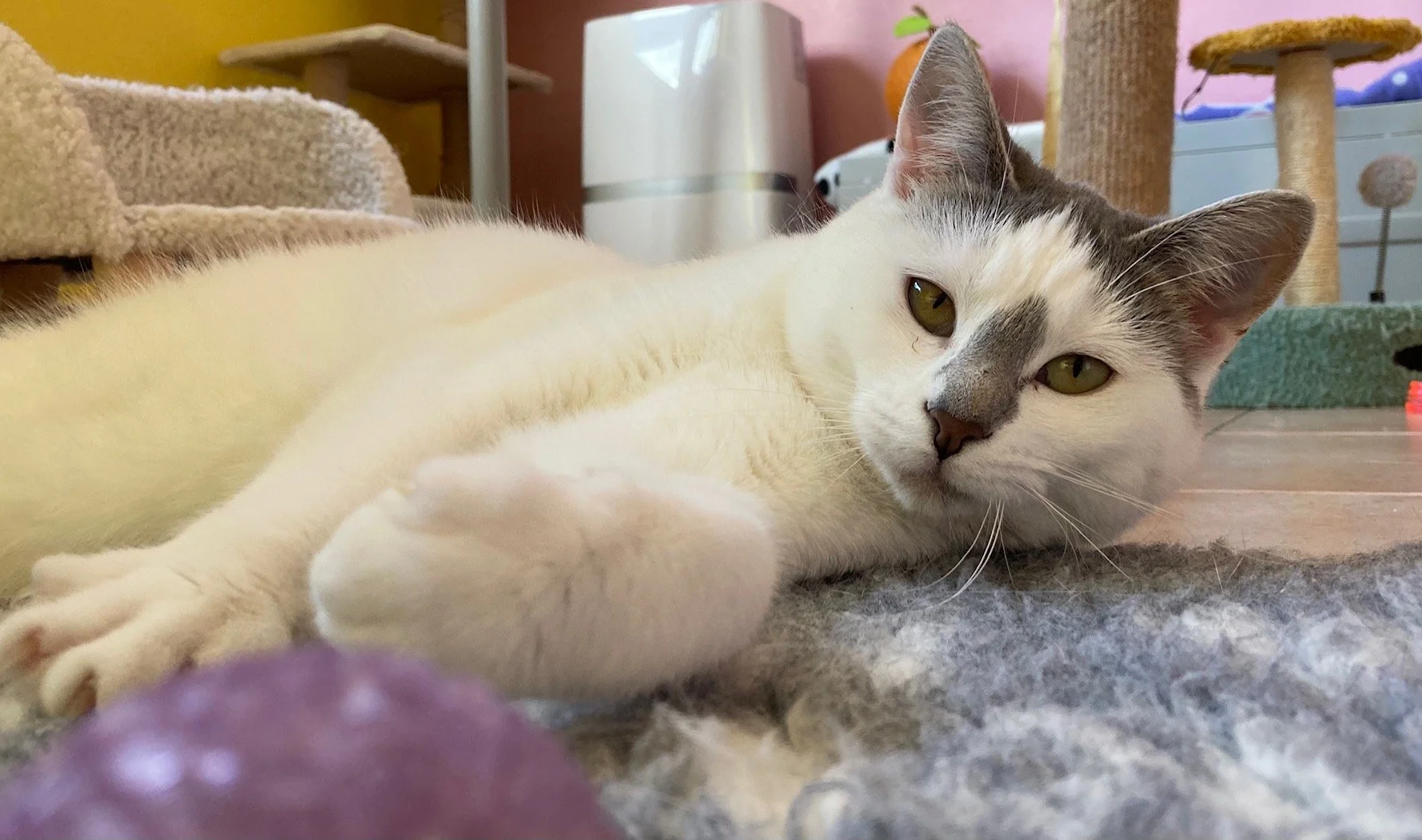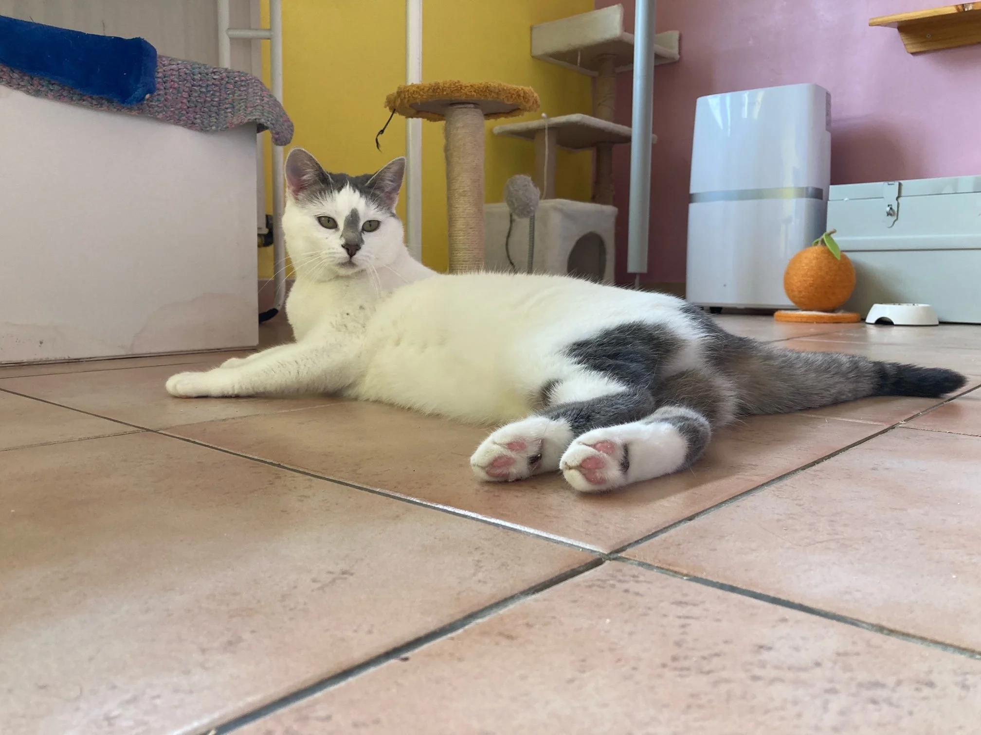Lola n’est jamais loin. Offrez lui de précieux moments calmes et posés (au sol par exemple) et Lola viendra se rouler, se frotter et patouiller près de vous, à son aise et dans son rythme pour, elle aussi, à terme, se poser à vos côtés en vous montrant qu’elle adore ça !
