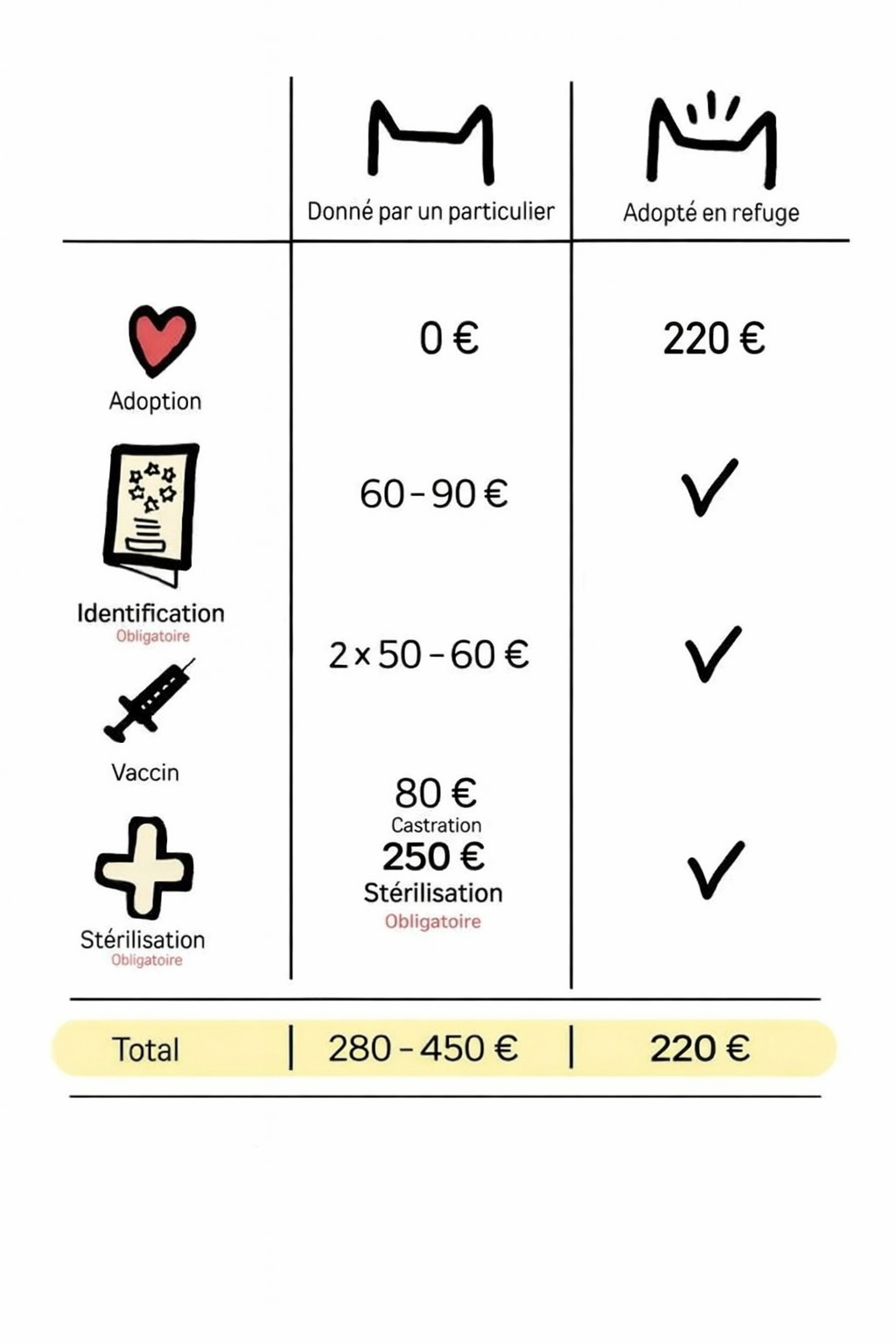Voici un petit tableau comparatif et les avantages d'adopter en refuge.